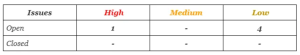 - Low severity issues are minor details and warnings that can remain unfixed but would be better fixed at some point in the future.