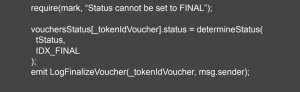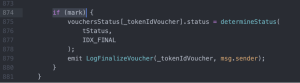 Recommendation: The validation in the triggerFinalizeVoucher() function, before updating the status of the voucher token, can be modified with a require statement as follows: