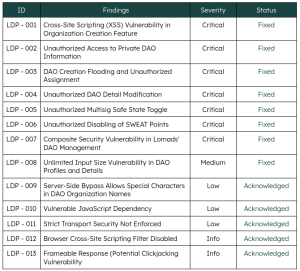 The Lomads DApp penetration test showcased the unique challenges of securing a robust DAO management platform. By thoroughly examining access controls, input sanitization, rate-limiting, and outdated dependencies, we uncovered vulnerabilities that could have facilitated account takeovers, data corruption, or service disruptions.